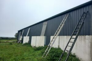 Our job is straightforward. We clean and paint agricultural and industrial buildings that have taken a beating from the Irish weather. Most of our work involves:
